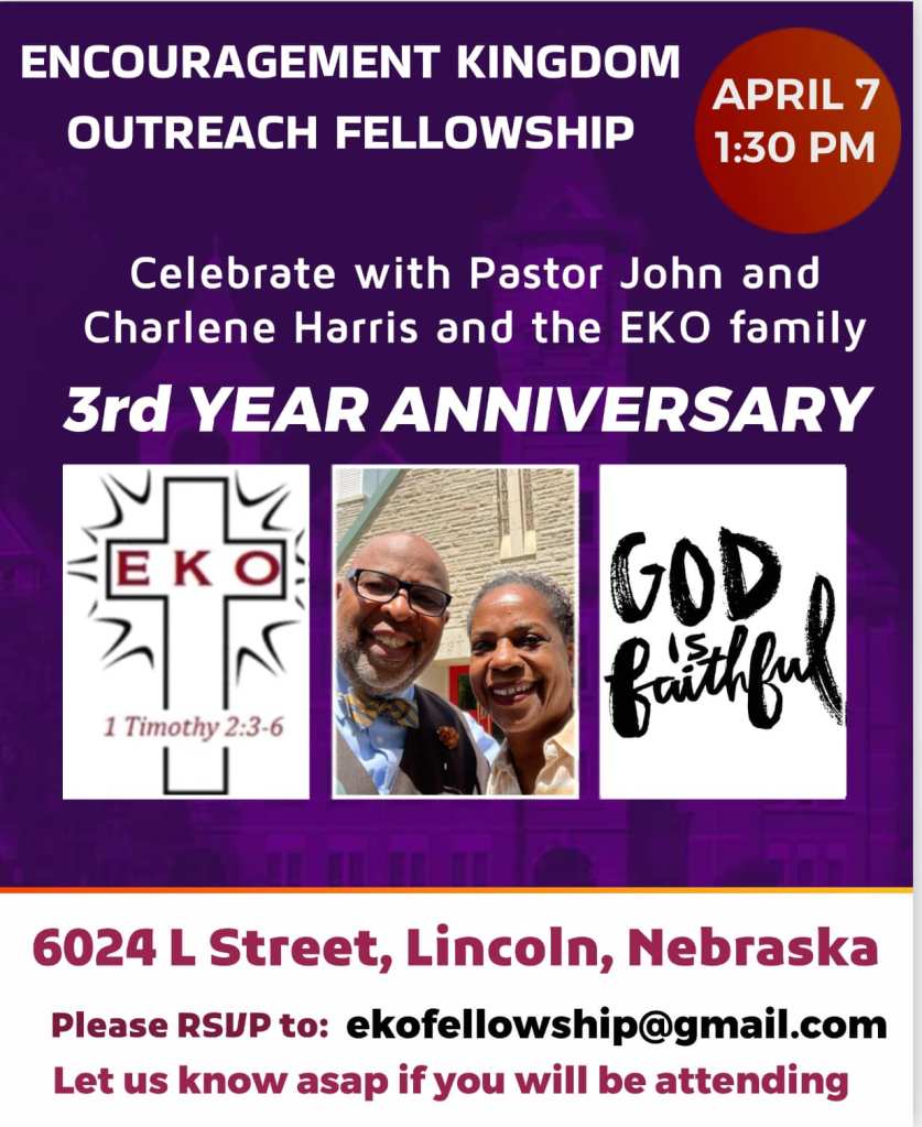 Thank you for stopping by the EKO website. Charlene and I have been married for nearly 39 years and we continue to walk as partners with God in His kingdom work. We welcome everyone to check us out and see if Encouragement Kingdom Outreach Fellowship is the place where you can grow in the grace and knowledge of our Lord Jesus Christ.